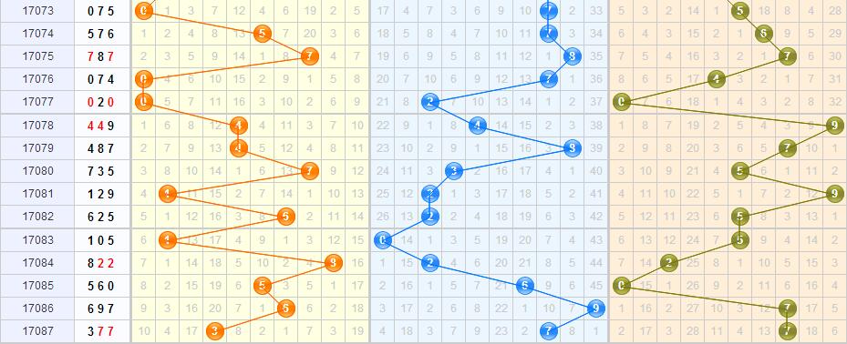 和值预测:上期和值下滑至17点,近期和值维持大幅振荡趋势,17088期重点防守和值的继续下滑。