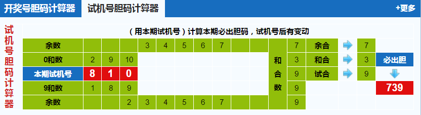彩票3d试机号胆码计算器推荐739,今天的试机号胆码计算器推荐的号码推荐了大小大,奇奇奇的组六形态,本期的胆码计算器推荐了与上期一样的全奇组合,本期不妨关注一下奇数的开出。7号球上期已经是重复号了,近期有再次走热的迹象,本期建议重点关注。3号球也是上期的重复号,不过近期3号球的连开能力不足,本期小防一下即可。9号球在本期是一个隔期号,近期9号球的出号情况还算可以,本期留意一下。