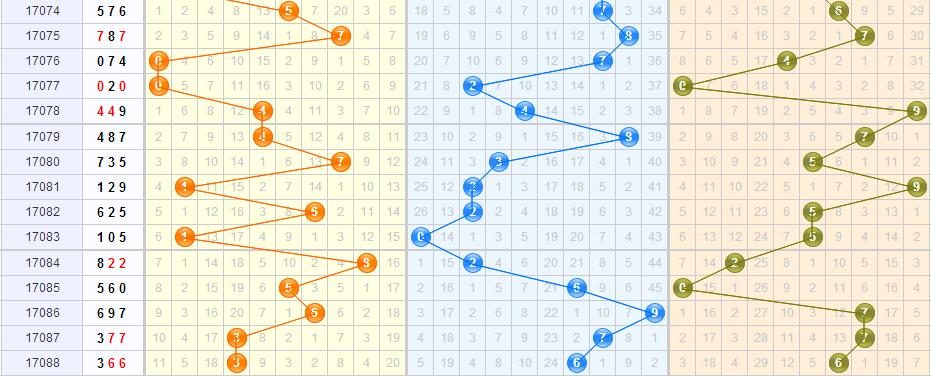 在除3余数走势中,上期开出余0路,本期依其走势推荐余1、2路;依其上面分析,除3余1、2和值推荐:10、13、14、16。17089期和值依其走势关注10、13、14、16。重点关注和值13、14、16。