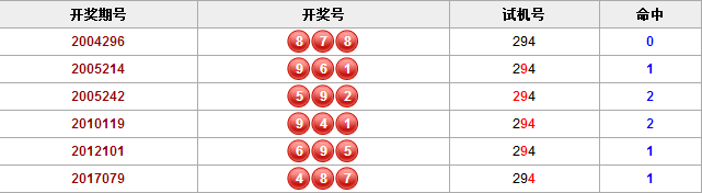 今日3d试机号开出294,本期试机号开出组六形态。结合近期试机号命中开奖号分布图分析,近期试机号命中开奖号的几率十分不乐观,已经五期没有命中了。但是越久没命中本期命中的几率就越大,因为不可能持续不命中下去,本期试机号值得关注。2、4、9均不是近期热号,本期试机号开出后,正好有可能以冷号回归的方式开出。