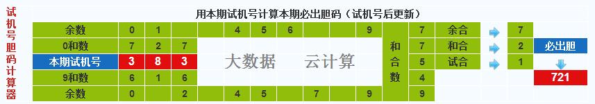 本期3d试机号胆码计算器给出结果:721