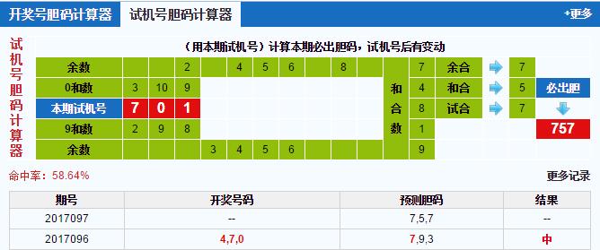 福彩3d第2017097期试机号:701