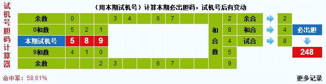 本期3d试机号胆码计算器给出结果:248