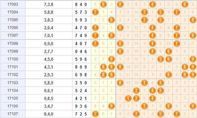 跨度分析:上期开出3跨,近5期跨度呈现5-3-3-6-5,这几期内跨度普遍集中在中部区域内,根据这个走势重点关注跨度4位置,为了防止走势再次回头转向大跨,在关注一下7跨和8跨的情况。