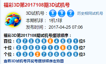 福彩3d第2017108期试机号:892