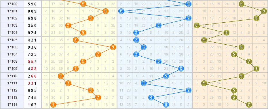 17114期开出了号码167,和值14,奇偶奇,小大大形态。
