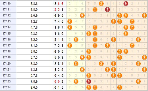 3、和跨分析:和值主防点位是在中大数区,看好15-21点;跨度主防中数开出,0路跨度是重点,接下来紧盯3跨,次防6跨。