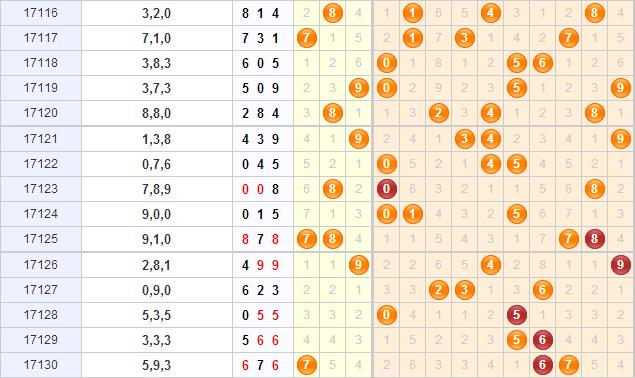 [十位分析]:十位上一路斜连向右,根据之前大振幅适当拉动的情况看,关注013防9;
