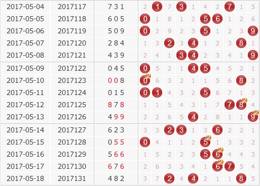 回顾:17131期开奖结果为:482;奇偶形态:偶偶偶;大小形态:小大小;和值:14;跨度:6