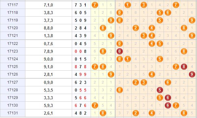 2、组三号码分析:组三号码近期应防再次回补开出,主防对子0、3、9等。