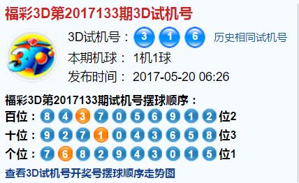 福彩3d第2017133期试机号:316