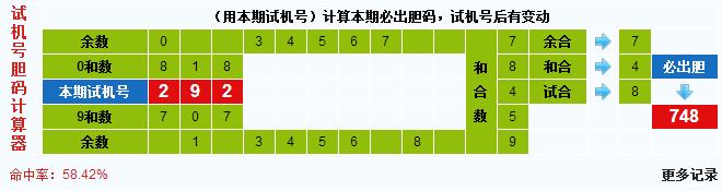 本期3d试机号胆码计算器给出结果:748