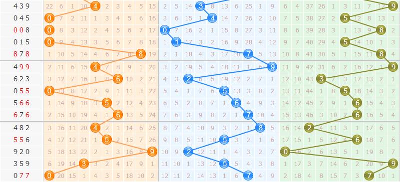 和值分析:上期的和值为14点,近期陆续开出和值振幅都比较小,且都集中落在了第二区间内,那么趁势而想,本期邻码和值出现的可能性比较大,可看好13和15,另外小和值和大和值始终是要防的,可防8和21。