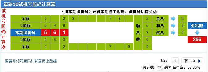 本期试机号胆码计算器推荐胆码:266
