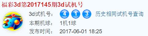 福彩3d第2017145期试机号:413