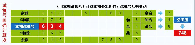 3d试机号胆码计算器:今晚必出胆码748