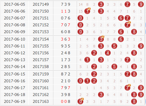 回顾:第17163期开奖结果为:008;奇偶形态:偶偶偶;大小形态:小小大;和值:8;跨度:8,开出了组三。