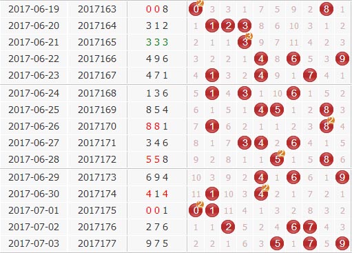 [个位分析]:个位上近期在中部区域出号最为活跃,本期看好235防9;
