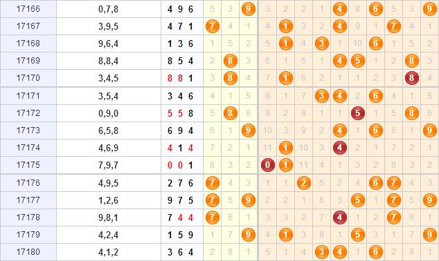 跨度走势分析:近5期跨度呈现5-4-3-8-3,这两期跨度连续拉动又回到了3跨上面,其实也是表现了近期小跨出号的强力程度,给大跨表现一期之后再次回到小跨上,本期关注3跨重复开出,同时看好2跨和4跨。
