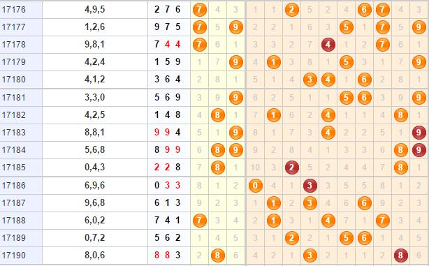 2、组三号码分析:组三号码近期出现中小号对子较多,后期主防中号对子5、6等。