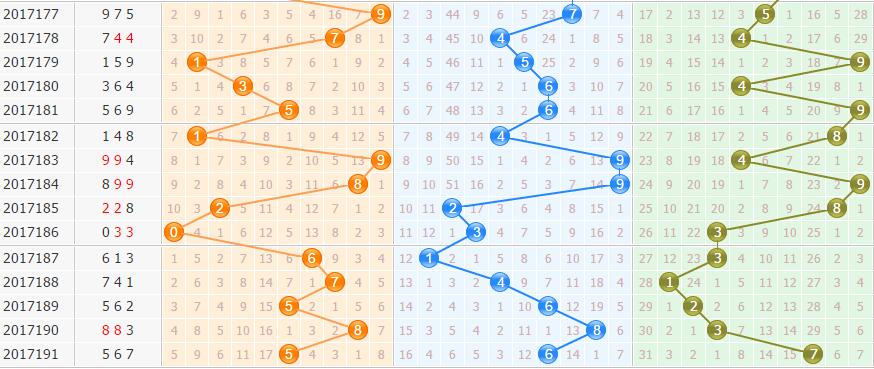十位大、奇、温、1路是本期十位数上的首选,从上面的条件中我们可以得出首选7,而次一级关注3这个数。