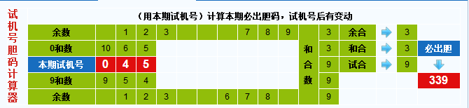 本期试机号胆码计算器推荐胆码:339
