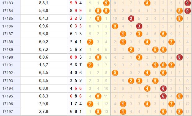 3、和跨分析:和值主防点位是在中或小数区,看好10-15点;跨度主防中小数开出,0路跨度3是重点,接下来紧盯1跨,次防8跨。