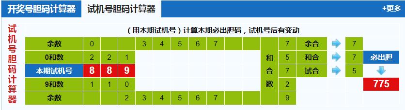 彩票3d试机号胆码计算器推荐,今天的试机号胆码计算器推荐的号码775,推荐了大大大,奇奇奇的组三形态,本期的试机号与试机号胆码计算器都推荐了组三的形态,目前组三间隔四期没有出号,本期建议关注一下。7号球在本期是一个重复号,7号球已经连续开出两期了,本期小防一下即可。5号球也是近期的一个冷号,目前遗漏6期,是上期6号球的邻码,本期建议关注一下。