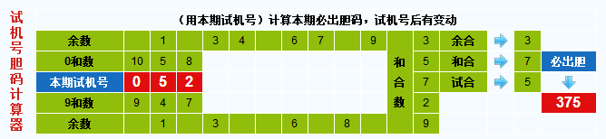本期试机号胆码计算器推荐胆码:375