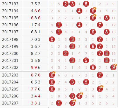 回顾:第17207期开奖结果为:331;奇偶形态:奇奇奇;大小形态:小小小;和值:7;跨度:2,开出了组三。