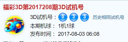 根据以上3d试机号开奖结果分析,今日3d试机号的号码是033,本期的试机号开出了小小小,偶奇奇的组三组合,组三形态目前已经连续开出了3期,近期组三重新转热,本期还是要防一下的。最近已经连续三期的试机号没有成为开奖号,本期建议可以重新关注一下。0号球目前间隔2期,在本期是上期1号球的练吗,本期可以关注一下。3号球在本期使用一个重复号,3号球已经了连续开出了两期,本期留意一下继续开出。