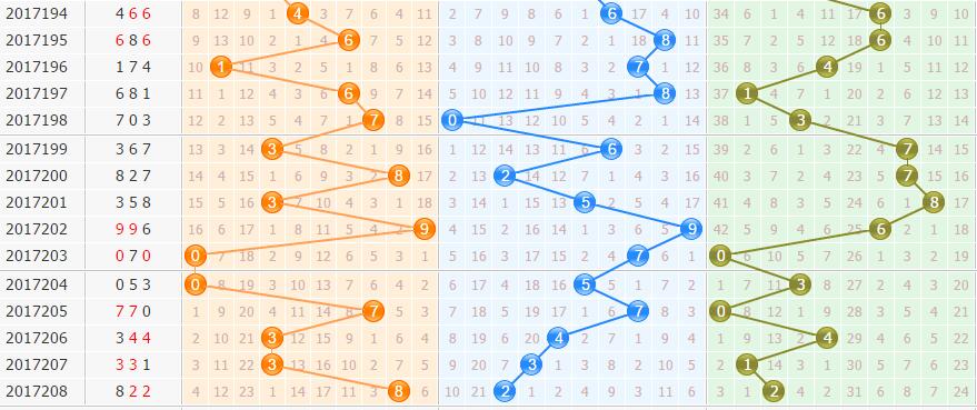 和值:上期开出和值12,和值呈现出走大的趋势,本期应关注继续走大,关注和值11、13、14开出。
