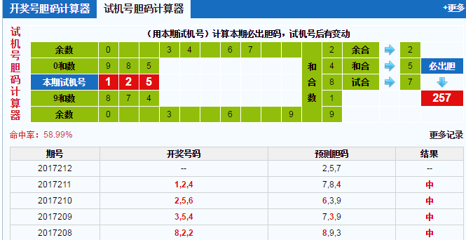 结合试机号胆码计算器来看,2号球上期是连续开出了,但似乎近期重复号开出大热,本期继续关注2号球的开出;5号球当前遗漏是1,5号球一直都是一个热号,本期也看好5号球的隔期开出;7号球算是一个冷号,已经有连续六期没有开出了,本期建议小防7号球回暖。