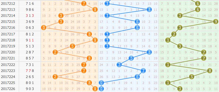 上期开出903,和值12,2奇1偶,1大2小,百位9遗漏7期、十位0重复,个位3遗漏6期,从整个出号来说,总遗漏值达到13期,说明有较热的号出现。而除3余数形态000路。
