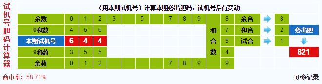 从试机号和胆码计算器结果来看,偶数相当受欢迎啊,从奇偶的走势来看,两奇一偶组合和两偶一题奇组合互不相让,本期要防范偶数的袭击;在和值上现在越来越向右偏移,第一区间暂时不考虑了,本期推荐和值范围10-23。