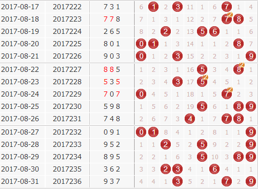 回顾:上期开出937,组六类型,奇偶比3:0,大小比2:1,和值19,001路组合,跨度6。