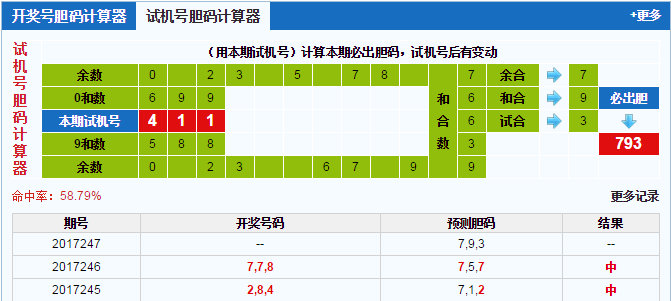 福福彩3d第2017247期试机号:411