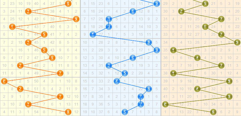 和值分析:上期的和值为19点,这两期和值依旧保持大振幅来回移动的走势,上期落点刚好进入大和值的范围,按照振幅贵了看,本期比较看重第二区间和值开出,小和值9可防。
