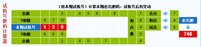 本期试机号胆码计算器推荐胆码:748