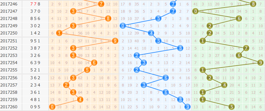 十位:上期的十位开出了9号球,号码已经开到了最右边,而且开出振幅都是小的,本期要看好十位往左小振幅的开出。