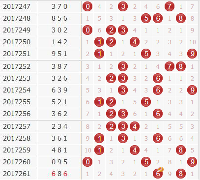 回顾:第17261期开奖结果为:686;奇偶形态:偶偶偶;大小形态:大大大;和值:20;跨度:2。
