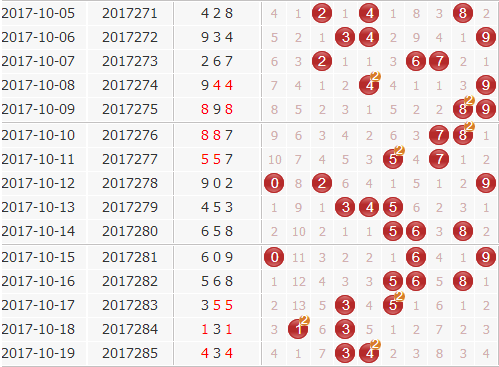 跨度分析:上期的跨度1,是一个小跨度,分析跨度走势来看,小跨度这一次完全翻身了,不过四期连开一直都是大小跨度连开的最大期数,本期还是要关注大跨度开出。跨度重点推荐:4 5 6 7。