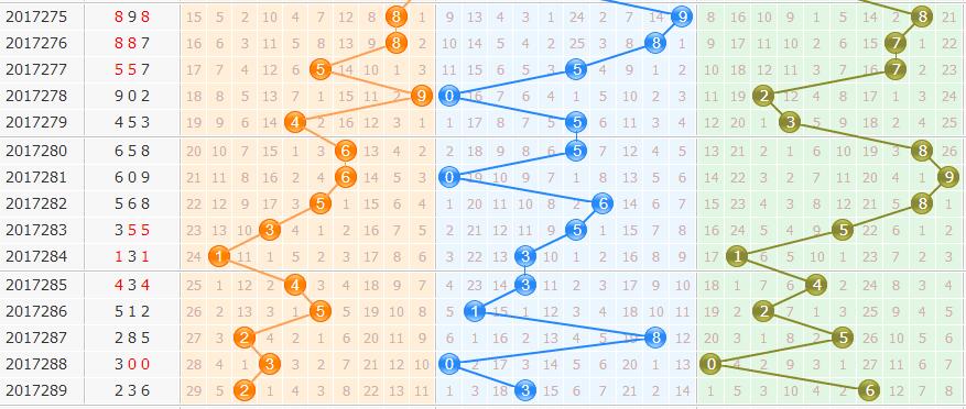 ③012路分析:为0路出2个,1路出0个,2路出1个;本期看好0路球出号,关注3码,综合分析看好,002 022路组合出号。