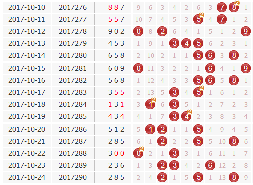 和值分析:上期和值为15点,上期开出了一个中间和值,上期和值上升,从最近几期的和值出号来看,最近一段时间的和值一直在中间偏左的范围内活动,最近和值开始呈现上升的趋势,本期看好和值继续上升,向右转移。本期和值推荐:10 13 17 19