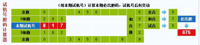 今日3d试机号的开奖号码是817,试机号胆码计算器开出看了675,从试机号跟试机号胆码计算器来看,1号球是上期的开奖号码,也就是重复号,目前虽然有两期重复号没有开出来了,但是近期的话重复号依旧有几率开出来,所以本期需要关注;剩下的5678这四个大数,比较有几率开出的是5跟6,5号球是一个隔期号码,上期开出了2个隔期号,所以本期非常得有机会开出来;6号球近期虽然稍微有点冷,不过近期的平均隔期数在4左右,所以本期也有几率开出来,剩下的两个号码防一下就好了。