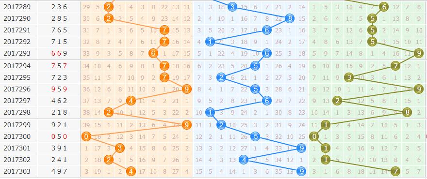 十位小、偶、温、0路是本期十位数上的首选,从上面的条件中我们可以得出首选0,而次一级关注3这个数。