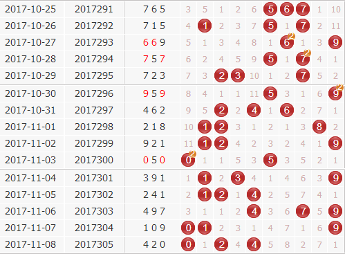 奇偶:上期开出了偶偶偶,0奇3偶,全偶的组合重新开出,从最近的奇偶出号来看,奇偶的出号整体上其实相差的不大,两者可以说是轮流出号,各不相让,上期偶数的组合重新开出,本期看好偶数继续开出。