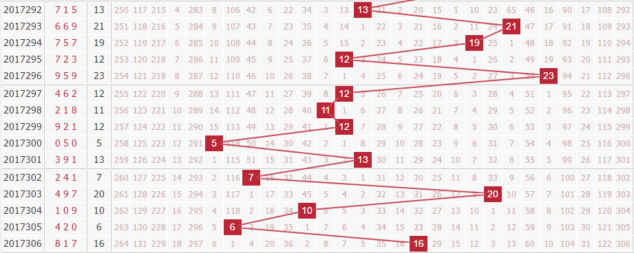 上期的和值开出了16,和值分布在第二区域,近期的和值分布波动偏大,分析近期的和值走势来看,本期有望开出一个大和值,推荐关注第二区域以及第三区域前部的和值开出,推荐关注和值:10 13 17 19 20
