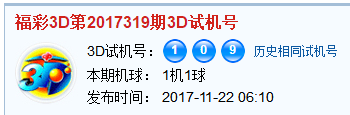 福彩3d第2017319期试机号:109
