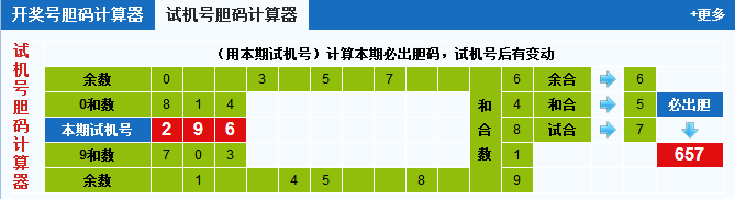 本期试机号胆码计算器推荐胆码:657